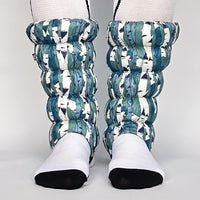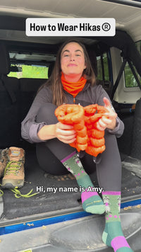 Wear Hikas inside your shoes, not over. They compress inside but expand over the top. Hikas keep out dirt, snow, sand, and ticks. A super-thin stirrup keeps them in place, and a simple drawstring makes sure they stay snug. Think of them like a cozy sleeping bag for your ankles.