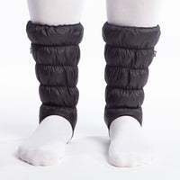 Wear Hikas inside your shoes, not over. They compress inside but expand over the top. Hikas keep out dirt, snow, sand, and ticks. A super-thin stirrup keeps them in place, and a simple drawstring makes sure they stay snug. Think of them like a cozy sleeping bag for your ankles.